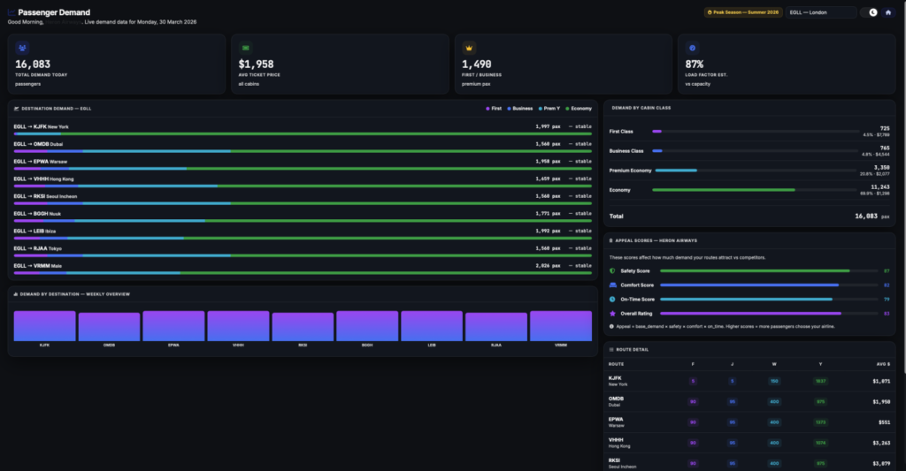 Demand for specific classes (First, Business, Premium Economy) will no longer be random. It will depend on the airport’s location and your airline’s reputation, which you build through service quality, safety, and fleet maintenance.